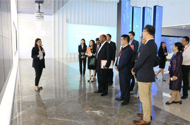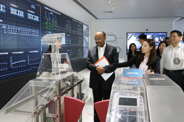 联合国副秘书长盖图一行正在参观kaiyun.com科技智能科技馆